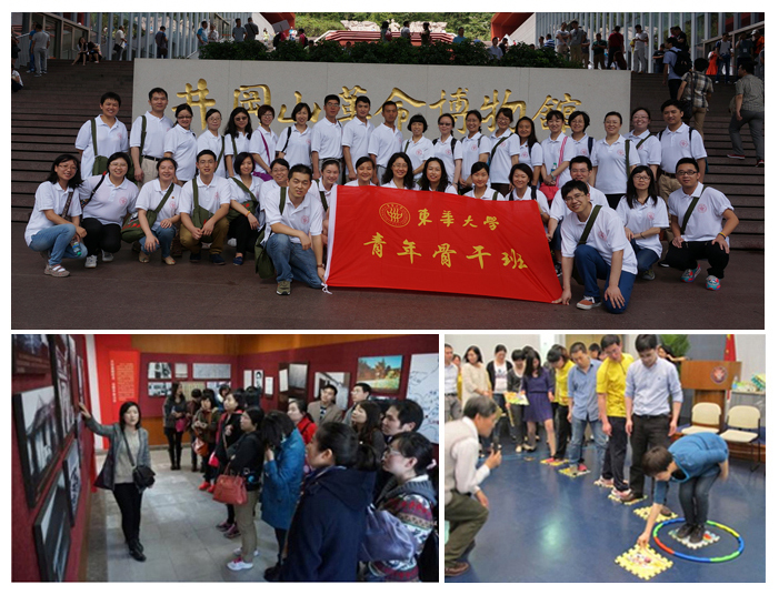 培训班班长、纺织学院许福军老师作培训班总结。本期培训班培训内容分为“高等教育与校情篇”、“理论学习与实践篇”、“党性修养与素质能力篇”和“革命传统与理想教育篇”四个篇章。在“高等教育与校情篇”中,党委书记朱民,校长徐明稚,党委副书记殷耀,副校长俞建勇、邱高、李永智,校长助理卿凤翎等先后围绕学习习近平总书记系列讲话精神、学校内涵建设、青年成长成才、高校创新能力提升、教育教学改革、信息技术、人才队伍建设等主题做了深入浅出的讲解。在“理论学习与实践篇”与“党性修养与素质能力篇”中,市委党校教授曾俊、唐珏岚、袁秉达等围绕习近平总书记关于中国特色社会主义、全面深化改革开放和中国梦论述等专题进行讲授与辅导,公文写作、老干部工作、上海发展、服饰礼仪、青年成长成才、团队辅导等课程也让青年骨干提升了个人素质和能力。在“革命传统与理想教育篇”中,学员们在井冈山革命教育基地经受井冈山精神的洗礼,在松江烈士陵园缅怀烈士功绩、弘扬烈士精神。本期培训班创新内容与形式,既有主题讲座,又有专题辅导,既有分组调研,又有现场教学,既有团队辅导,又有社会实践,让青年骨干关注国家改革,又关切学校发展,帮助青年骨干坚定理想信念、加强党性修养、提高综合素质和促进学校内涵发展的能力。