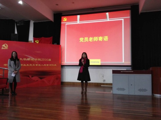 3月24日,管理学院2016届研究生毕业生党员重温入党誓词仪式在延安路校区举行。学院党总支副书记叶晓燕、毕业班辅导员及学生党建指导老师参加此次活动。