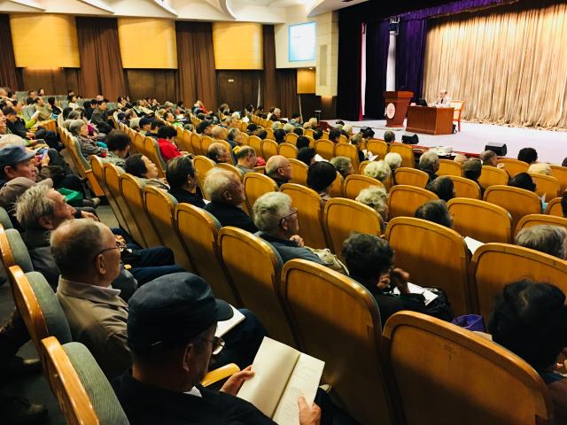 退休老同志认真听讲并做详细笔记,纷纷表示贺善侃教授的报告内容丰富、讲解生动兼具学术性,帮助大家深入领会十九大精神的核心要义和精神实质。